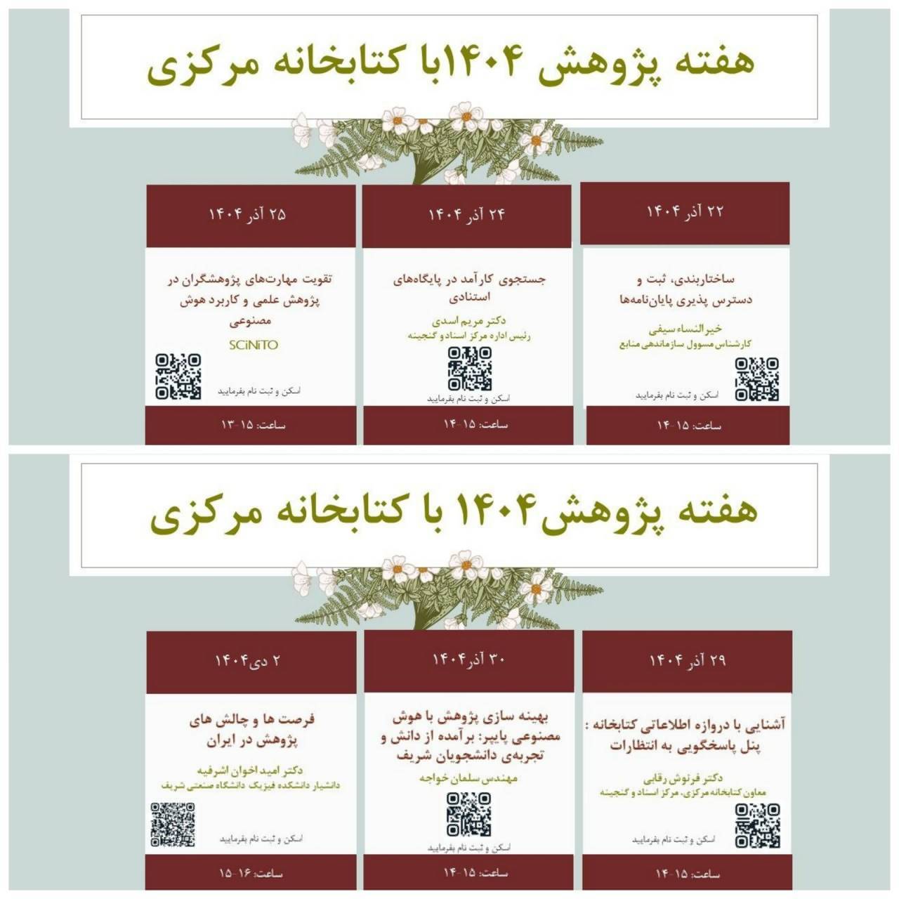 زمان‌بندی ویژه برنامه‌های هفته پژوهش و فناوری در دانشکده‌ها، پژوهشکده‌ها و مراکز دانشگاه صنعتی شریف
